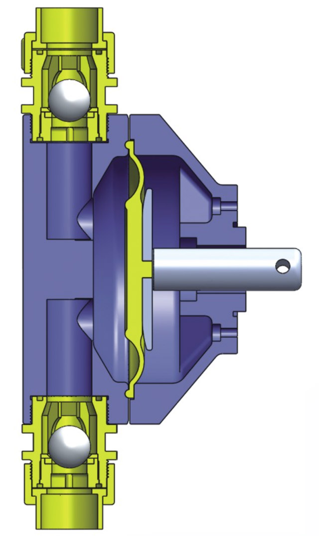 泵的壓力端借助隔膜來組成工作腔,以隔膜周期性變形來改泵腔內容積的泵稱為隔膜計量泵,隔膜計量泵是一種可以滿足各種工藝流程需要、用來輸送 液體(特別是腐蝕性液體)的可以調節(jié)流量的特殊容積泵,也叫定量泵、加藥泵、比例投加泵。